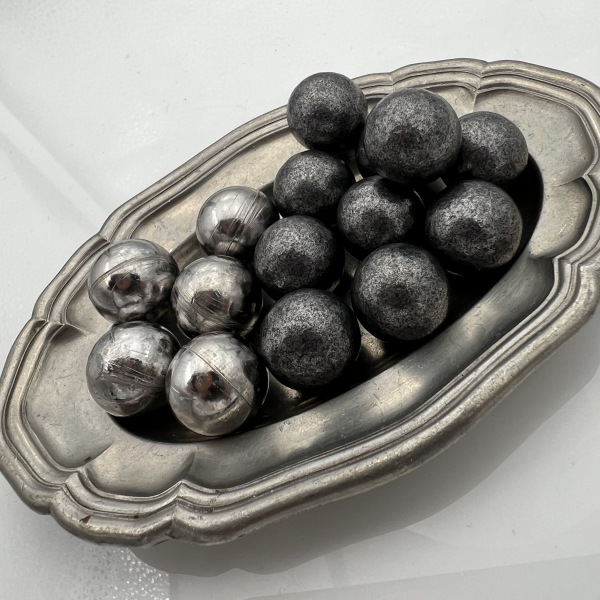 ich biete hier 50 Stück handgegossene, Blei-Rundkugeln für Gewehre und oder Kurzwaffen im Kaliber .629 (Ø ca. 16,01 mm) an.