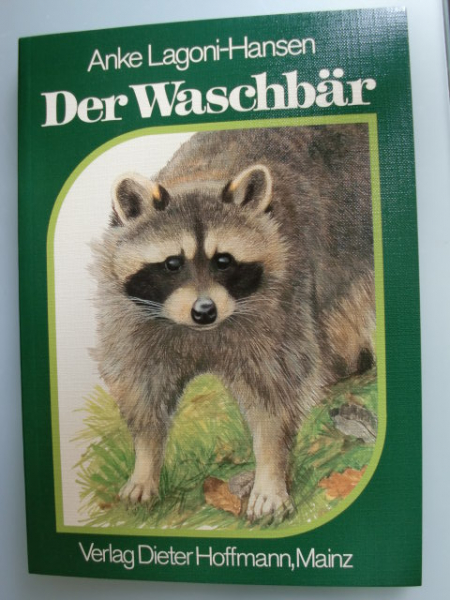 DER WASCHBÄR - Lebensweise und Ausbreitung - von Anke Lagoni-Hansen, Verlag Dieter Hoffmann, Mainz 1981, 124 Seiten mit vielen Abbildungen - Inhalt u.a.: Entdeckung und Namensgebung / Beschreibung der Art: Äußere Erscheinung - Fell - Sinnesorgane und "Intelligenz" - Spuren und Lautäußerungen - Körpermaße und Gewichte - Altersbestimmung / Systematik und Stammesgeschichte / LEBENSWEISE: Lebensraum / Aktivität / Schlaf- und Ruheplätze / Winterruhe / Ernährung / Fortpflanzung / Entwicklung und Aufzucht der Jungen / Verhalten und Gruppenbildung / Wohngebiete / Populationsdichte, Geschlechterverhältnis, Altersaufbau und Abwanderung / Natürliche Sterblichkeit, Feinde, Krankheiten / JAGD UND BEEWIRTSCHAFTUNG / Einbürgerung und Verbreitung / Bestand im In- und Ausland / Auswirkungen auf die Umwelt / uam - Sehr guter Zustand