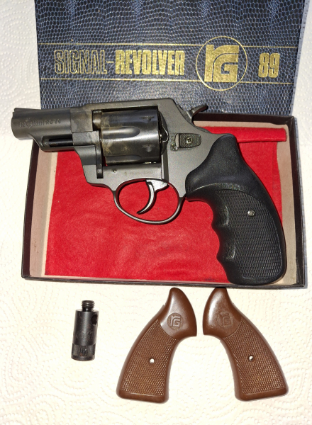 Verkaufe einen in TOP Zustand, gebrauchten Revolver RÖHM RG 89, PTB 451, Beschuss: KK - '99, Ulm, einer der letzten Revolver mit der gesuchten PTB 451, (wurde nur bis 1999 gebaut), in der original Verpackung, (ein Ecke eingerissen, repariert), mit dem obligatorischen roten RÖHM Filztuch und einem Abschussbecher für Pyro's. Ich habe dem RG 89 Combat-Griffschalen aus Kunststoff in schwarz verpasst, sieht halt besser aus, die braunen original Griffschalen sind natürlich auch dabei, s. Bild, Bild und myGun sind Bestandteil des Verkaufsangebotes. Ich versende ausschl. per POST/DHL, NUR Deutschland, OHNE Inseln, nach Geldeingang und Vorlage eines Altersnachweis (PA Kopie als Mail Anhang), versichert, mit Übermittlung der Sendungsnummer.
