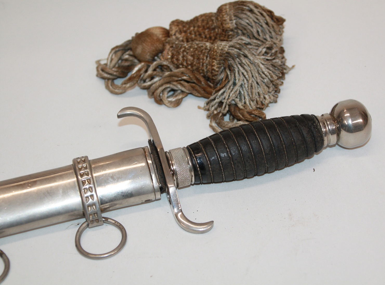 1 x Offiziersdolch ohne Hersteller. Osteuropa ? Total 41,5 cm. Klinge 29 cm. In guten Zustand, kleine Beule auf der Scheide.