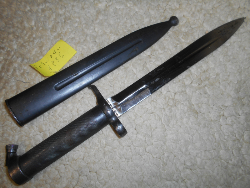 Altes gut erhaltenes originales Bajonett mit Scheide, Schweden-Mauser M96. Gestempelt/Abnahme Krone/Schweden mit E.J.A.B und K.A.1, Länge der Klinge sind 21cm. Ab sofort schreibt das neue EU-Gesetz vor, nachfolgenden Vermerk aufzuführen: "Ich verkaufe bei meinen Verkäufen ausschließlich Gebrauchtware, sofern nicht anders beschrieben. Diese Artikel sind aus meinem Privatbesitz und ich verfolge mit meinen Verkäufen keinerlei gewerbliche Zwecke. Eine Rechnung gibt es hierfür nicht. Da mittlerweile auch Privatverkäufer ein Jahr Gewähr leisten müssen, wenn sie das nicht ausschließen, erkläre ich hiermit ausdrücklich, dass ich für meine privat verkauften Artikel keine Gewährleistung und keine Rücknahme übernehme. Mit dem Kauf erklären Sie sich ausdrücklich damit einverstanden, auf die Ihnen nach neuem EU-Recht gesetzlich zustehende Gewährleistung/Garantie bei Gebrauchtwaren völlig zu verzichten!"