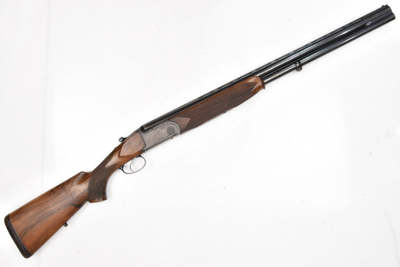 Die Läufe sind 71 cm lang und mit Voll- und Halbchoke versehen. Der schöne Pistolengriffschaft aus rötlichem Maserholz ist ca. 36 cm lang und mit einer belederten Schaftkappe versehen. Die Waffe verfügt über einen griffgünstig im Abzug umschaltbaren Einabzug und Ejektoren. Ein besonderes technisches Schmankerl stellt die herausnehmbare Abzugsgruppe mit den Schlossen dar (siehe Bilder).