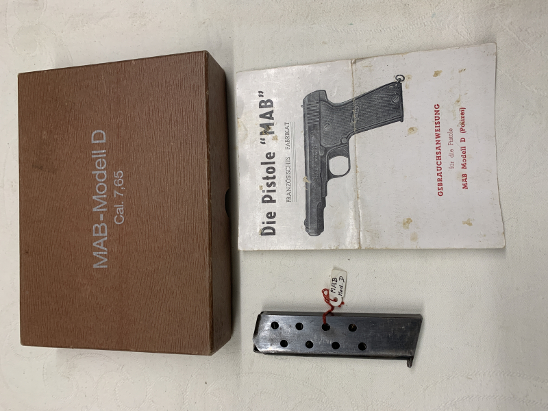 Magazin für eine MAB, Mod. D. im Kal. 7,65. Bei dem Magazin ist eine Originale Gebrauchsanweisung ( Polizei ) und die Originale Schachtel, mit dabei ( siehe Bilder ). Das Magazin und die Schachel sind in einem guten Gebrauchten Zustand, ebenso die Beschreibung. Privatverkauf, keine Garantie oder Rücknahme.