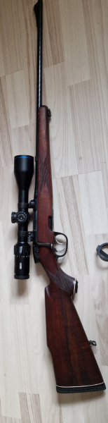 Der Zustand ist neuwertig. Im Schaftholz keine Kratzer oder Dellen. Neu geölt. Sehr schönes, dunkles Schaftholz mit toller Maserung. Schöne, dezente Schaftverschneidung. Deutsche Backe. Seitliche Schiebesicherung. Riemenbügel sind dabei. Der Läuf ist spiegelblank und sehr wenig geschossen. Außen ist die Brünierung an manchen, wenigen Stellen etwas abgegriffen. Montageringe etc absolut neu. 5 Schuss Magazin (herausnehmbar), neue Schaftkappe. Bei Sofortkauf gibt es die Restmunition dazu, sowie neue Flip Caps (Okular und Objektivschutz) zum Aufschrauben aus Aluminium, sowie der Versand geht auf meine Kosten, nur bei Sofortkauf.. Insgesamt sehr guter Zustand.
