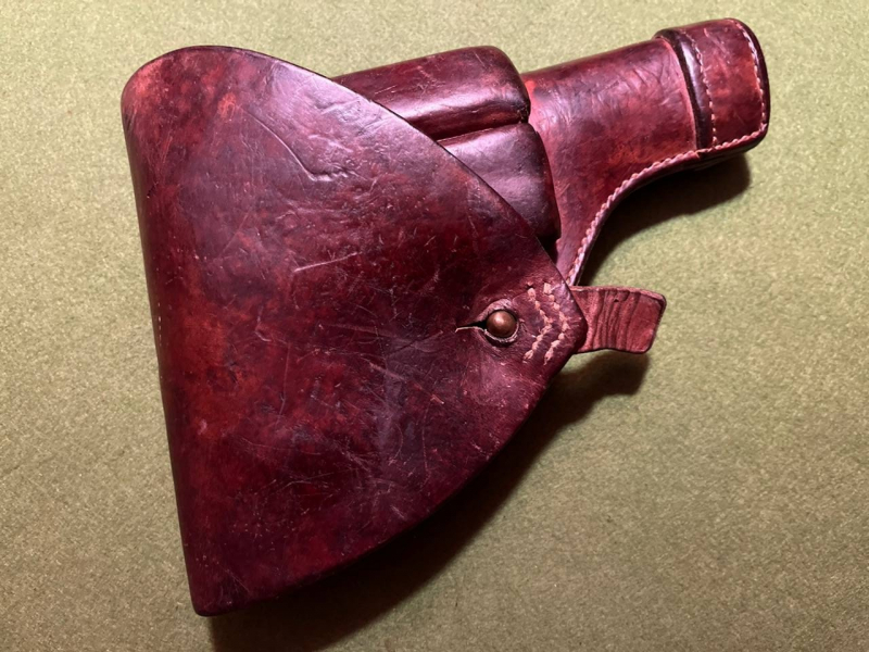 Das Holster ist alt, und wahrscheinlich seltener als die bereits erwuahnten üblichen aus hellem, bemusterten Leder mit oder ohne die 3 schwedische Kronen. Sicher interessant als Ergänzung für eine Vitrinenwaffe, sei es wenn man die richtige oder "nur" ein Modell der scharfen Waffe hat.