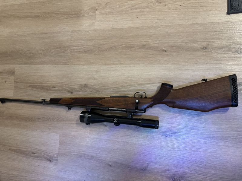 Zum Verkauf steht eine Sauer 80 Repetierbüchse im bewährten Kaliber 9,3×64, ausgestattet mit einem Zeiss Zielfernrohr 2,5–10×52. Die Sauer 80 ist bekannt für ihr stabiles System und den weichen Schlossgang.