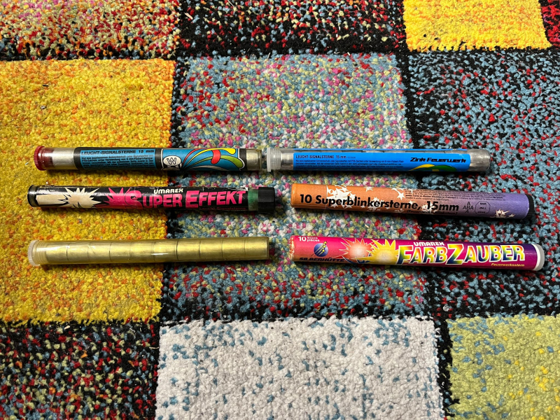 Zum Verkauf stehen die zusehenen Leuchtsterne im Kaliber 15mm PM1 Signalmunition für Schreckschuss Waffen.