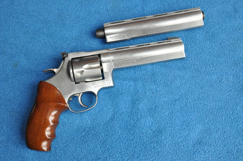 Schöner Revolver in Stainless Ausführung. Waffe wurde für das sportliche Schießen überarbeitet, trocken brechender Abzug. Volle Funktion, Lauf blank. Mit einem 6" und 9" Lauf, Schlüssel zum Öffnen der Laufmutter ist nicht dabei.