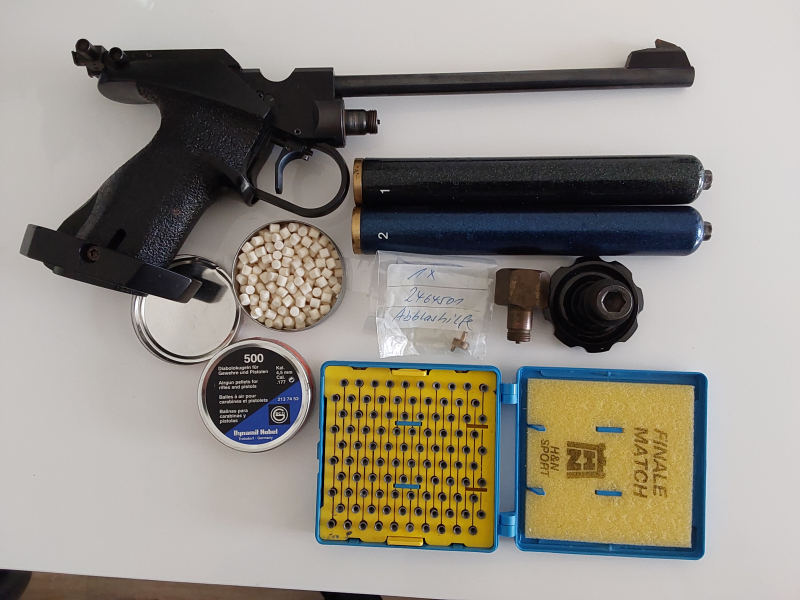 Angeboten wird hier eine Walther Match Luftpistole CP2 . Treibmittel ist CO 2. Mit dabei das abgebildete Zubehör.