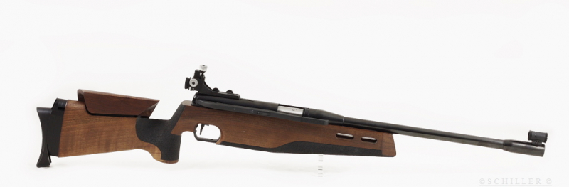 Durch seine Prellschlagkompensation eignet es sich zudem hervorragend für das Schießen mit Zielfernrohr. Derzeit ist ein Anschütz-Diopter und der dazugehörige Korntunnel mittels der am Gewehr befindlichen 11mm Prismaschiene montiert.