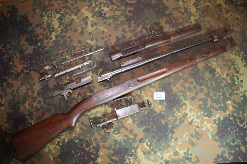 Achtung, aufgepasst: Sie bieten hier auf ein original tschechisch (CZ) gefertiges M1932 DEKO Gewehr, gefertigt für Peru. Zustand, siehe Fotos. Der obere Handschutz leider im vorderen Bereich gerissen und die Halteklammer hinten hat sich gelöst. Folgende Abänderungen hat dieser freie Teilesatz: Systemhülse wurde zerschnitten, Rohr 6-fach geschlitzt, Patronenlager verschweisst, Stahlstift im vorderen Laufdrittel verschweisst, Stossboden des Verschlusskopfs 45° abgeschrägt und Schlagbolzenloch verschweisst. Entgegen dem Egun Hinweis: es ist KEINE EWB erforderlich, weil es sich um freie Ersatzteile ohne waffenrechtliche Eigenschaften mehr handelt! Versandkosten innerhalb Deutschlands 10 Euro, Versand ins EU-Ausland 30 Euro.