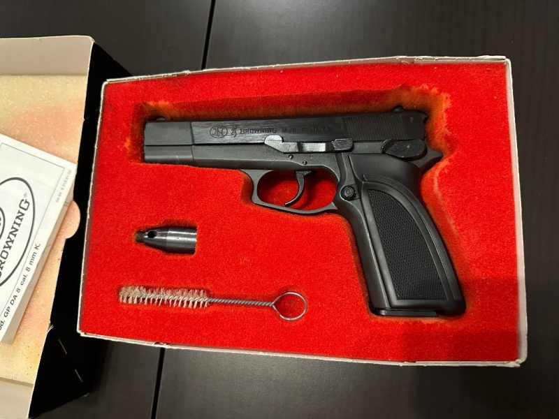 ich biete hier eine Browning GPDA8 Schreckschusspistole an. Made in WEST-Germany. Die wichtigsten Teile sind noch aus Stahl hergestellt, die Magazinfeder sitzt ordentlich stramm. Wie der Name schon erahnen lässt, ist die Waffe im cal. 8mm. Orignal-Karton, Anleitung, Bürste und Abschussbecher sind vorhanden. Der Schaumstoff im Karton löst sich langsam etwas auf, das Alter hinterlässt nun mal seine Spuren.
