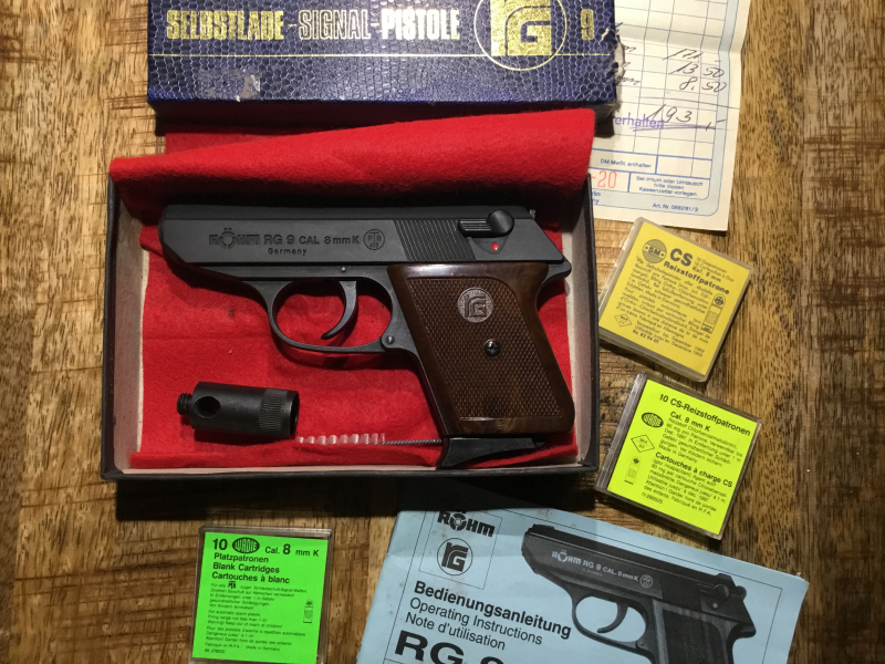 Ich biete eine RG 9 Pistole mit dem Beschussjahr 1993 im Bestzustand an!Die Waffe stammt aus einer Wohnungsauflösung und ist keine von denen die bei Egun hin und hergereicht werden.Die Oberfläche ist praktisch makellos,sie wurde wahrscheinlich nur einmal geschossen da bei den Platzpatronen eine fehlt.Sie befindet sich im originalen Karton mit Bürste,Abschussbecher,rotem Tuch,einer Anleitung,der originalen Rechnung,sowie 9Platzpatronen,eine Packung SM Gaspatronen und weiteren 9 Gaspatronen!Ein Gesamtpaket hervorragend für Sammler.Da ich als Privatmann anbiete und die Vorgeschichte der Waffe nicht kenne weise ich ausdrücklich darauf hin das ich keine Garantie gebe und sie auch nicht zurück nehme.Ich habe sie nicht geschossen nur „trocken“ ausprobiert.Normalerweise bietet man sowas nicht an aber ich habe keine Verwendung dafür und sammeln diese Pistolen auch nicht.Meine Angaben habe ich nach bestem Wissen und Gewissen gemacht,Nachforderungen oder sonstiges stoßen bei mir auf taube Ohren,die Bilder sind Bestandteil der Erklärung.Ich biete die größtmögliche Transparenz,der Käufer erfährt wann sein Geld eingegangen ist,wann ich mit DHL versende und zum Schluss bekommt er die Sendungsnummer.Wer mit allem einverstanden ist kann hier ein schönes Stück deutscher Zeitgeschichte erwerben,absolut vitrinentauglich.