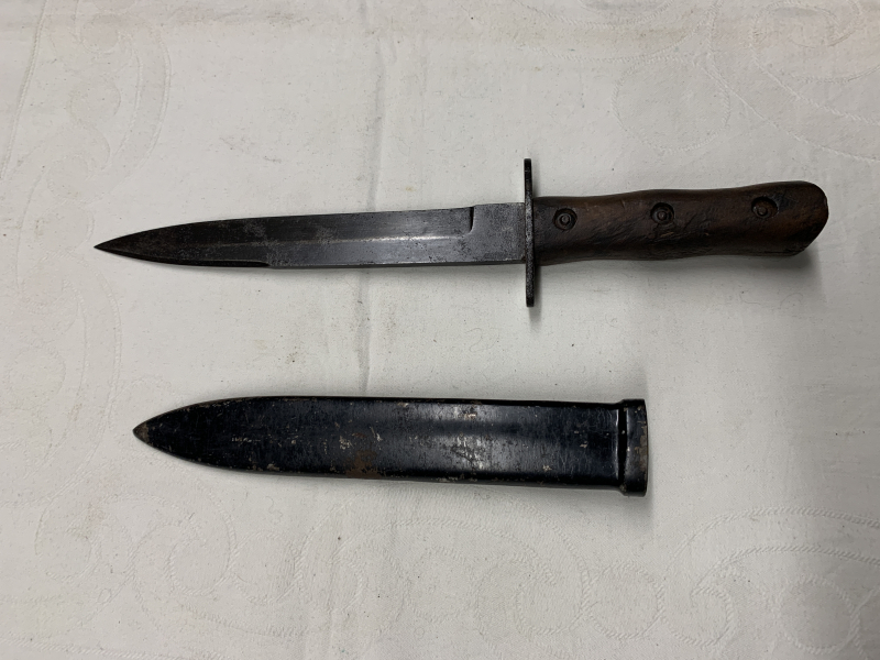 Italienisches Kampfmesser, es hat einen Holzgriff und eine Stahlscheide, es hat keine Aufpflanzvorrichtung. Das Kampfmesser ist in einem guten gebrauchten Zustand. Privatverkauf, keine Garantie oder Rücknahme. Da ich meine Kampfmesser ( Dolch Sammlung ) auflöse, kommen noch mehr