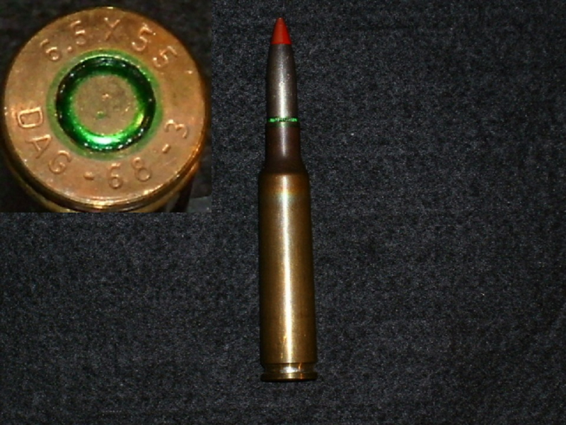 aus Sammlung eine 6,5 mm Schweden Mauser L,spur rot, DEKO ohne Treibladung und ohne Pyrosatz im Geschoß , mit Klapperkugel