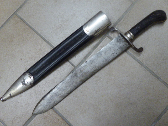 könnte Baden sein--oder Österreich----SELTEN------eine griffschale beschädigt--sonst Gebrauchsspuren--Scheide fleckig---auf der Klinge steht BACKFISCH----sonst seht bitte Fotos--Fragen bitte vorher stellen------Ab 18 Jahre-----keine Rücknahme--Porto EU 22€