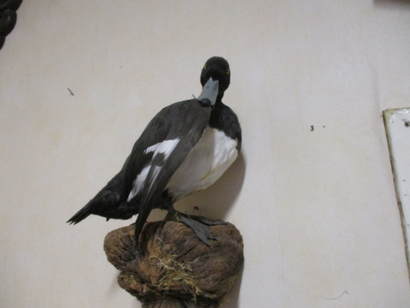 Sie bieten auf das Präparat eines Reiher Enten Erpel montiert auf einem Holz .