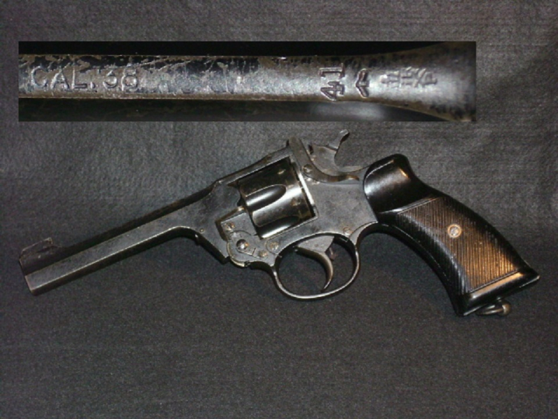 ein Revolver Enfield No.2 MK I 1940 cal.38 S&W, nummergleich, Lauf gut-sehr gut, Trommel nicht wackelig, Original Finish, nicht Überarbeitet, noch mit Hahnsporn, automatischer Hülsenauswurf, vor 35 erworben.
