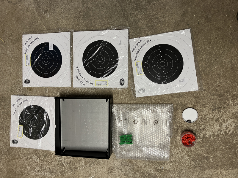 Verkauf eine Indoorshooting-Set bestehend aus einem Kugelfang (schwarz aus Metall mit "Kugelfangrückwand ist doppelt und gefedert", für indoor von Pedersoli, einen Spezialpiston für Schrotzünder (CCI209) ebenfalls von Pedersoli, 29 "Indoor-Sporting-Scheiben" (passend zum den Kugelfang), Hersteller Pedersoli und 50 Stück Dialolo Geschosse mit Holzboden Kaliber 45 aus Kunststoff vom ARTAX.