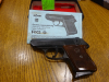 sehr gut erhaltene, fast schon neuwertig zu nennende Schreckschusspistole Röhm RG 9 Kal. 8mm K, im Originalkarton mit Magazin, Bürste und Bedienungsanleitung, kaum Gebrauchsspuren, insbesondere keine Graufärbung des Auswurffensters, wurde vermutlich nur sehr wenig benutzt,