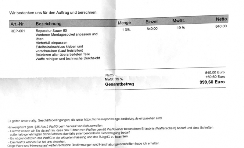 • Schaft: Holzschaft, neu gebettet im Jahr 2020 (durch Büchsenmacher, Rechnung vorhanden)