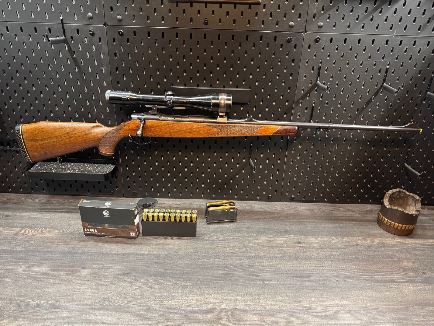 Zum Verkauf steht eine klassische Repetierbüchse Sauer 80 im leistungsstarken Kaliber 8×68 S – eine bewährte, hochwertige Jagdwaffe aus deutscher Fertigung, bekannt für ihre Robustheit, Präzision und Langlebigkeit.
