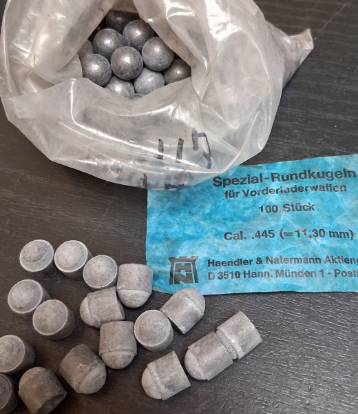 100 Stück Vorderlader Geschosse aus Blei Cal. / Kal. 45 / .445 / .440 (ca.11,3mm). Von HN Haendler & Nattermann.