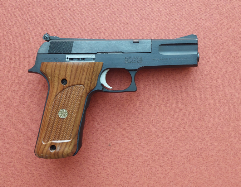 Eine Pistole von Hersteller "Smith & Wesson", Mod. 422 / Kal.: .22lr / nur wenig oberflächige Spuren, sehr guter Gesamtzustand / Lauflänge ist 115mm / der Lauf ist innen blank /