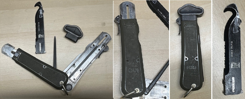 Hier kommt ein original Bundeswehr Fallmessergriff der Fallschirmjägertruppe mit einer gesetzeskonformen Rettungsklinge von Eickhorn zur Versteigerung. Der Griff ist original Bundeswehr Fallschirmjäger, die Klinge ist eine Eickhorn Rettungsklinge-Klinge aus dem Rettungsmesser. Die Funktion ist einwandfrei.