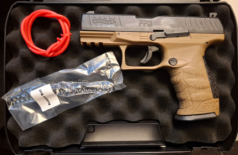 Es handelt sich um eine WALTHER PPG M2, Defense Training Markierer, Farbe FED, Angabe vom Hersteller mit 4 Jouke.