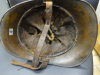 originaler seltener Messinghelm Ulmer Form, geprägter Spitzkamm, mit Leder-Innenausstattung,