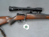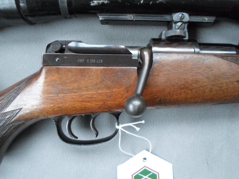 Mauser 66 Stutzen, Kaliber .243 Winchester, gültiger deutscher Beschuß von 1966, Zielfernrohr 4 x 36, Absehen 1, deutscher Stecher, Brünierung 95 %, Schaft mit Gebrauchsspuren, Gesamtlänge 95 cm, Schaft / Abzug 35 cm, Lauflänge 51 cm. Mit Gewehrriemen.