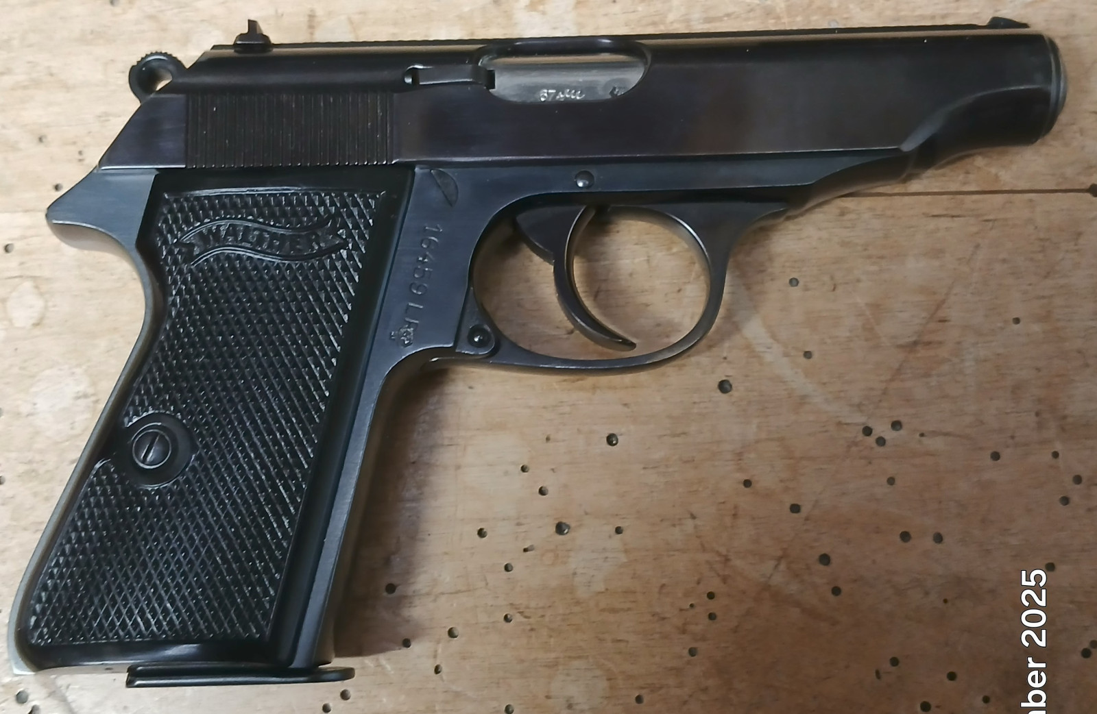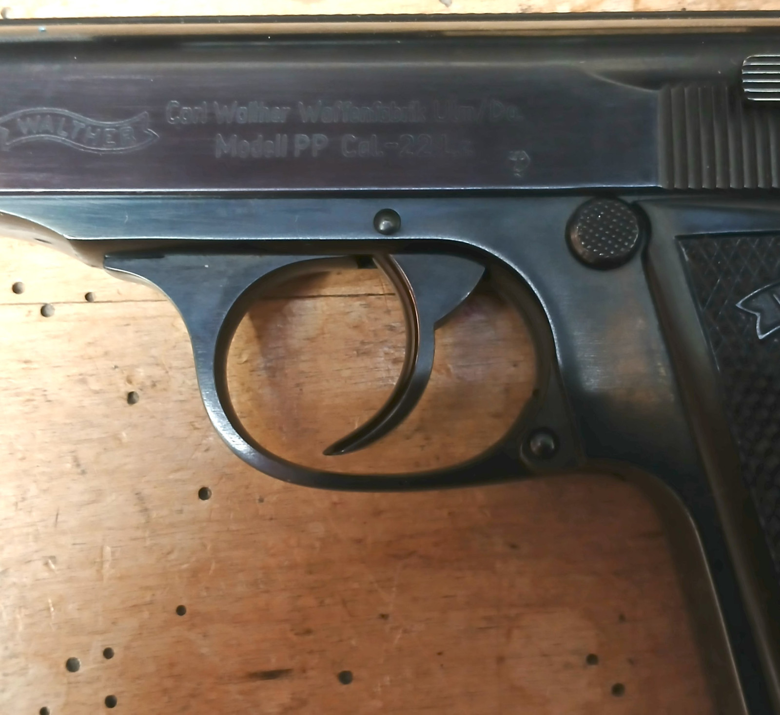Pistole Walther Ulm PP befindet sich in einer Schachtel Fertigung Manurhin mir der gleichen Seriennummer; Schussbild; kein weiteres Zubehör