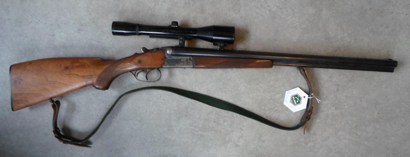 Drilling Suhl Kaliber 7 x 57R und 16/70, gültiger deutscher Beschuß, Zielfernrohr Hubertus Germany 6 x 42, Absehen 1, Kratzer außen rechts am Zielfernrohr, Brünierung 98%, Schaft mit wenigen Gebrauchsspuren, neuer Akah Gewehrriemen, Verschluß geht saugend, alle 3 Läufe blank.