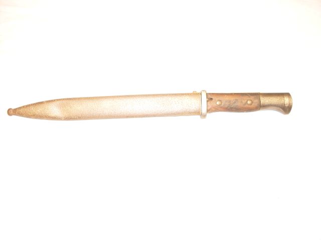 Sie bieten hier auf ein Bajonett 84/98 aus der Zeit des ersten Weltkrieges mit Stahlscheide. Hersteller Gottlieb Hammersfahr aus Solingen, Klingenrücken W 17. Drücker ist gängig. Schrauben Griffe nicht geöffnet. Ein kleiner Teil der Klingenspitze fehlt. Scheide vollständig narbig. Altersbedingte starke Trage- und Gebrauchsspuren zu erkennen. Zustand gemäß Fotos. Details und Fragen bitte vor Ablauf der Auktion klären. Farbabweichung durch Blitzlicht möglich. Privatverkauf kein Rückgaberecht und Gewährleistung. Der Bieter erklärt sich durch sein Gebot mit diesen Bedingungen einverstanden. Verkauf und Versand nur innerhalb von Deutschland mit Hermes Paket versichert.