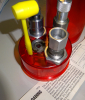 Die Gewinde der Matrizen passen für die RCBS-Pressen, hier im Einsatz: RockChucker (und passt auch für alle Lyman Pressen.)