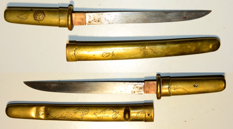 Kleines japanisches Schwert von Schutzpatronpuppe, Edo-Zeit, Klinge 14,6cm, Gesamtlänge 21,4 cm, mit Scheide