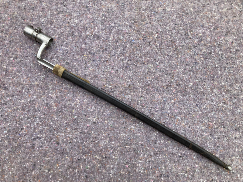 Die Scheide ist leicht geschrumpft, sodass das Bajonett nicht mehr vollständig passt.