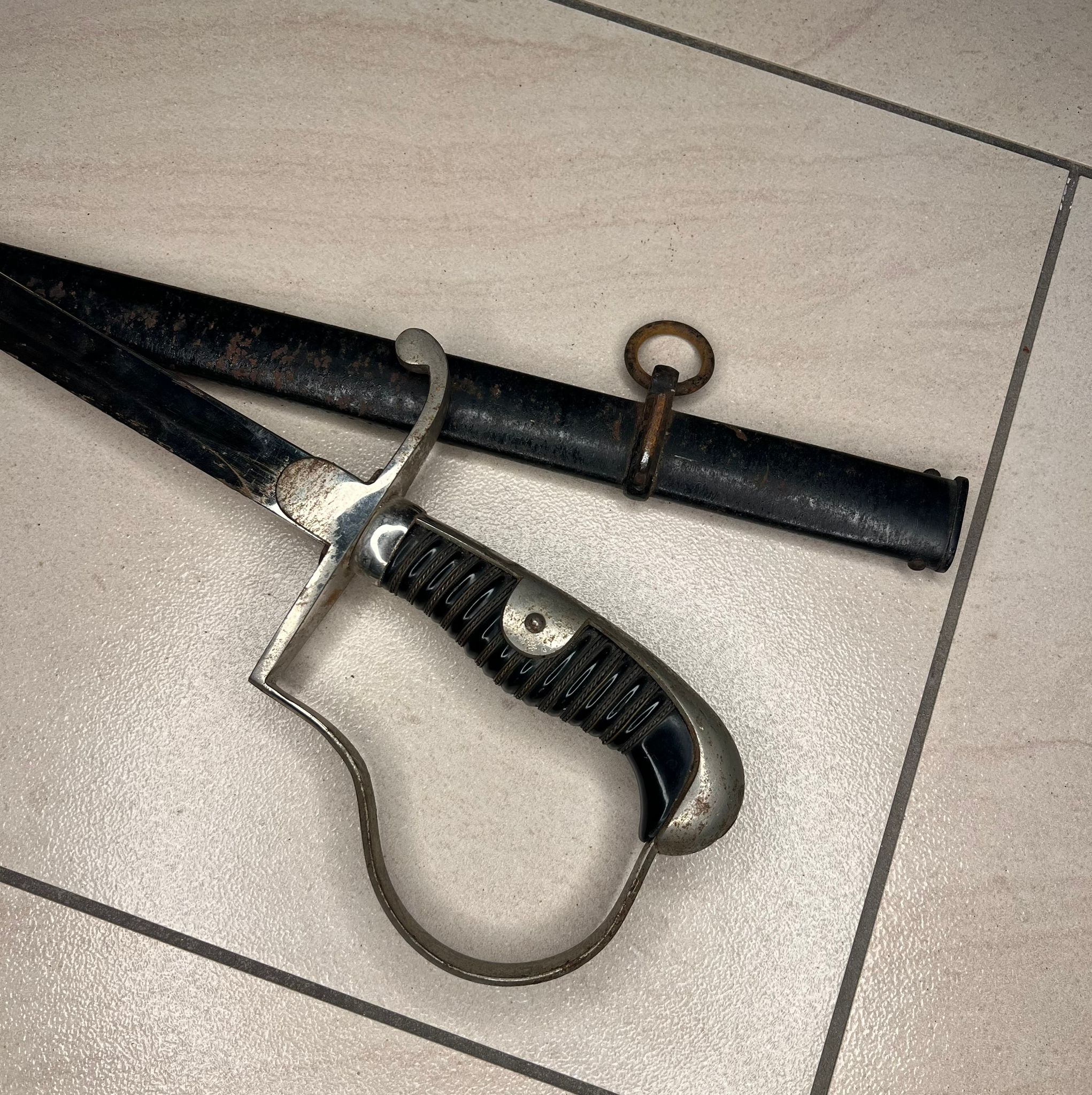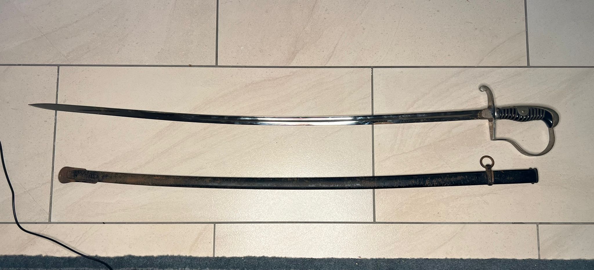 Hierbei handelt es sich um folgende Blankwaffe: Art: Säbel Herkunft: Deutschland / Preussen Hersteller: Mir unbekannt Gesamtlänge: ca. 109cm Klingenlänge: ca. 87cm Zustand: Bitte anhand der Bilder entnehmen Allgemein: Ich konnte leider keine Punze/Stempel des Herstellers finden.