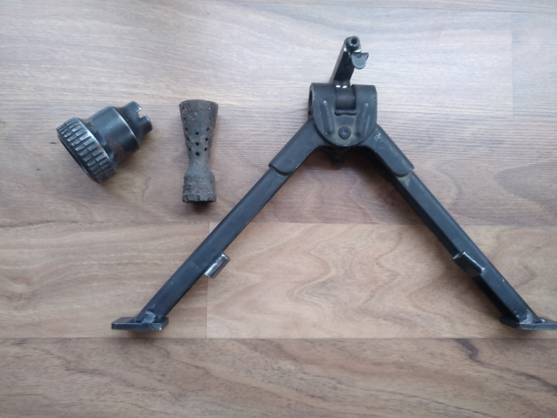 Biete hier Zweibein und eine Mündungsbremse für Platzpatronen an. Verkaufe es als defekt wegen dem Alter. Rest siehe Fotos. Dies ist eine private Auktion ohne Garantie oder Rücknahme.