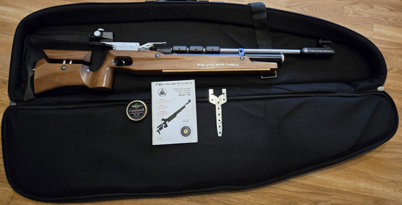 Zubehör: Tasche, Korntunnel M22, 3 Laufgewichte, Diopter, Standard Feinwerkbau und Schlüssel Kartusche.