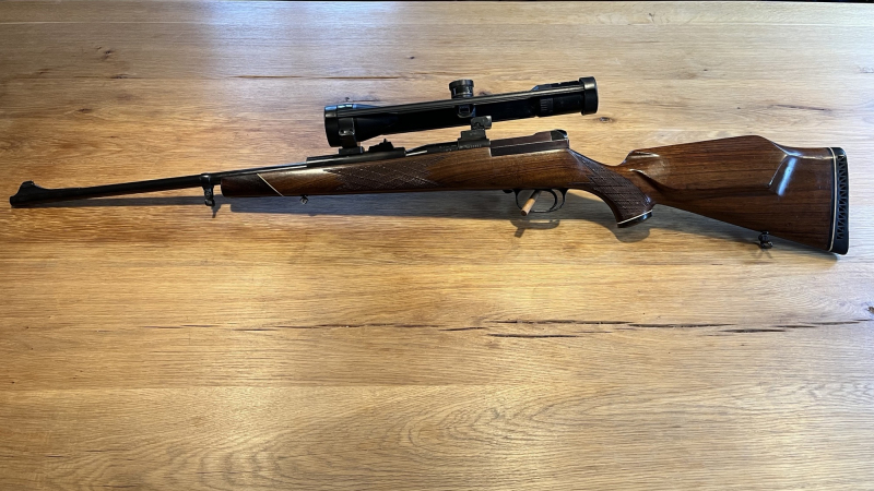 Verkaufe eine Mauser 66S im selten zu findenden Kaliber .243 WIN. Die Waffe wurde regelmäßig geführt und weist entsprechend Gebrauchsspuren auf (siehe Bilder). Der Lauf ist von innen blank und gut profiliert. Die Waffe ist mit einem Flintenabzug ausgestattet. Das Zeiss VM 3-9x42 Absehen 4 ist mittels EAW Schwenkmontage montiert und wurde mit einer Absehensschnellverstellung ASV (Höhe) von Zeiss nachgerüstet. Die Waffe hat einen zweiten vorderen Riemenbügel, so kann am Schaft bei Bedarf ein Zweibein montiert werden. Versand erfolgt bei Bedarf mit Overnite. Bei Selbstabholung gebe ich bei vorliegender EWB gratis 36 Schuss Restmunition Barnes Vor TX 80 grs TSX mit dazu. Privatverkauf eines gebrauchten Gegenstands, keine Gewährleistung, keine Rücknahme, kein Umtausch.