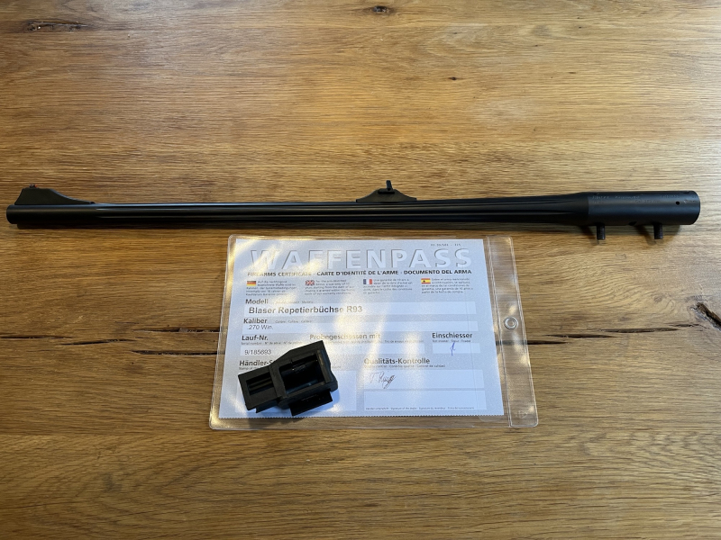 Verkaufe einen kannelierten Blaser R93 Wechsellauf im Kaliber .270 WIN für eine Blaser Attache. Der Lauf wurde wenig geführt und weist geringe Gebrauchsspuren auf (siehe Bilder), die Schussbelastung liegt bei unter 50 Schuss. Der Lauf ist von innen blank und gut profiliert und weist eine blasertypisch gute Schussleistung auf. Das zugehörige Magazin sowie der original Waffenpass sind mit dabei. Der Versand erfolgt bei Bedarf mit Overnite.