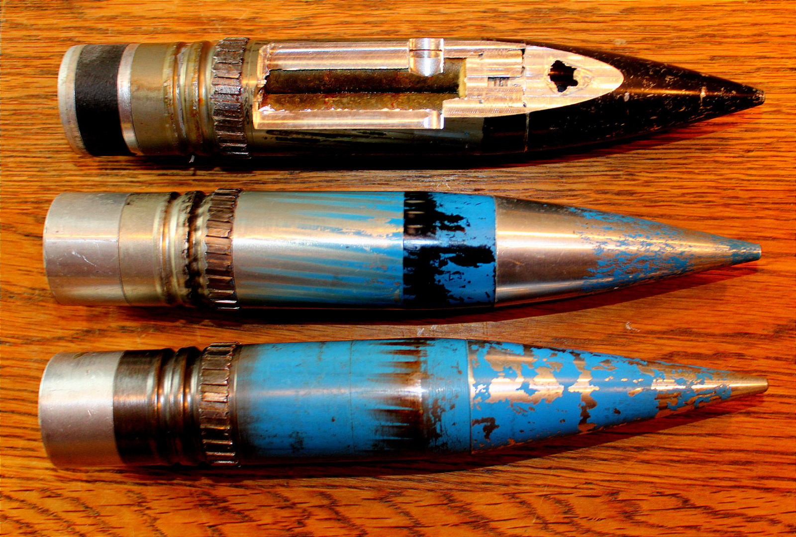 Sie bieten hier auf sehr seltene und einzigartige Versuchsgeschosse aus der Entwicklungsabteilung von Rheinmetall. Hier wurden inerte, mit Wolframstählen beschwerte Geschosse auf Wasserbecken geschossen, um Erkenntnisse über die maximal erzielbare V0, den Auszugswiderstand, die Stabilität und die erforderliche Dralllänge und die optimale Masseverteilung zu ermitteln.