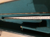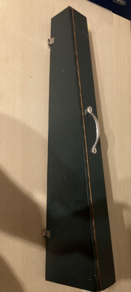 Flintenkoffer aus Holz, dunkelgrün bezogen, mit Schnappverschlüssen.