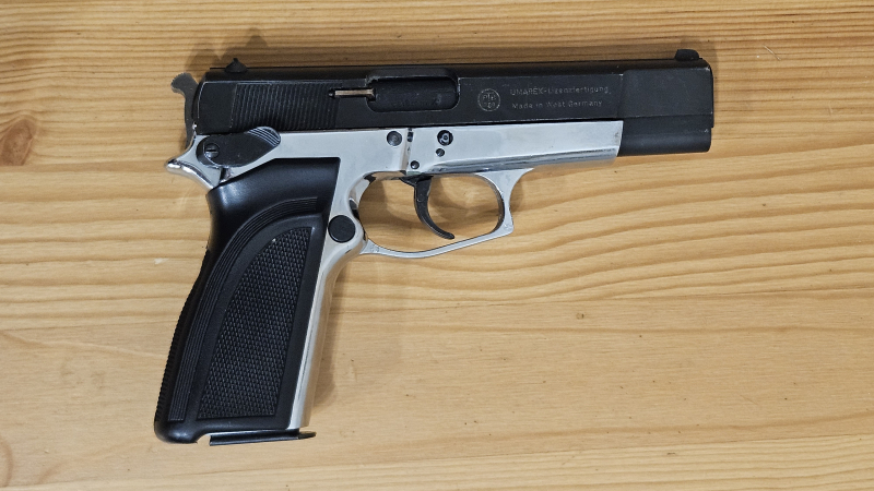 Hallo liebe Egunner, heute inseriere ich ein ganz besonderes Stück! Eine Schreckschusspistole von Umarex nach amerikanischem Vorbild - Browning GPDA9 - in hochwertiger Stahlausführung mit verchromten Bauteilen - im Kontrast zum brünierten Schlitten ein ästhetischer Leckerbissen ;) Auch die scharf wirkende Mündung, welche den störenden Dorn ganz tiefsitzend verschwinden lässt, trägt zu der sagenhaften Erscheinung dieser Replik bei. Sie war bei mir stets ungeschossen, da ich sie für so profane Tätigkeiten einfach zu schön fand - zum Rumknallen gabs da paar andere :) Sie steht dem Original in Nichts nach - tatsächlich dachte ich damals, als ich sie mit meinen Händen empfing, es sei eine Echte... zu schade :s