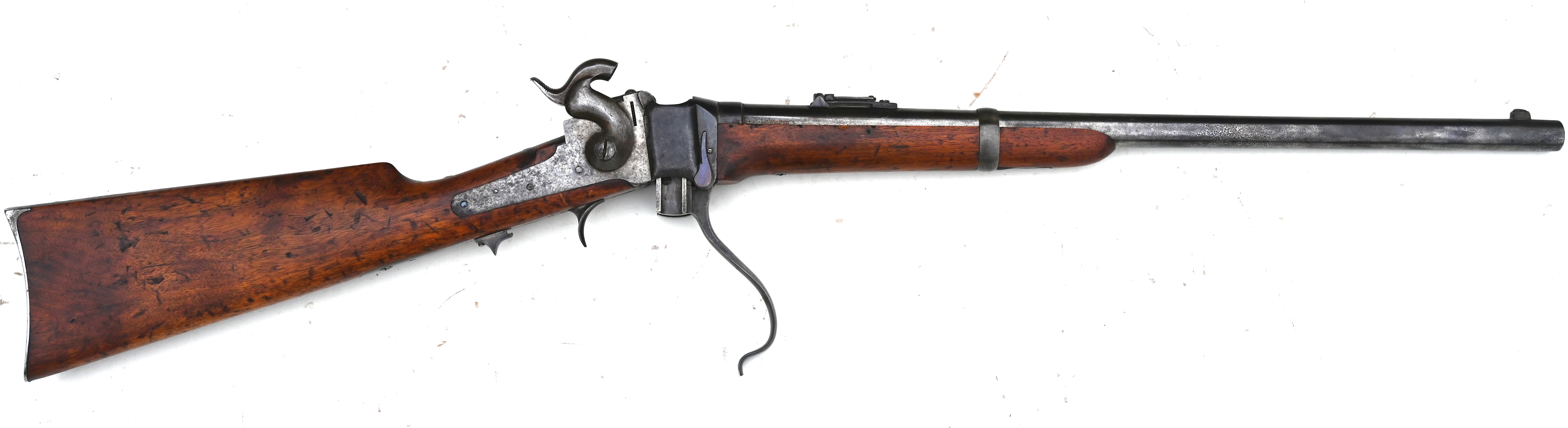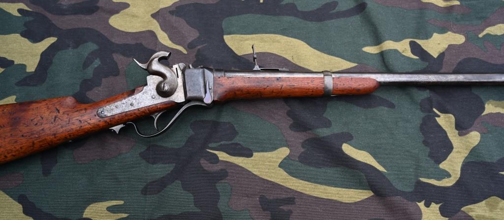 Schwarzpulverwaffe, Hinterladergewehr für Papierpatronen, Perkussionsgewehr mit Fallblocksystem, Sharps Rifle, Sharps Carbine, Saddle Ring Carbine, Sattelkarabiner, Cavalry Carbine