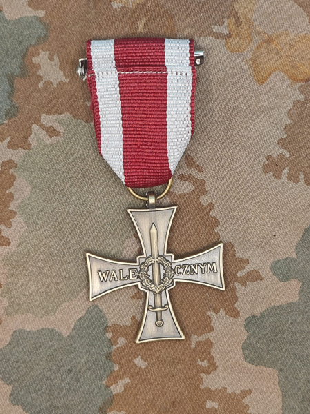 Zum Verkauf steht eine hochwertige Replik des polnischen Tapferkeitsordens „Krzyż Walecznych“ (Kreuz der Tapferkeit).