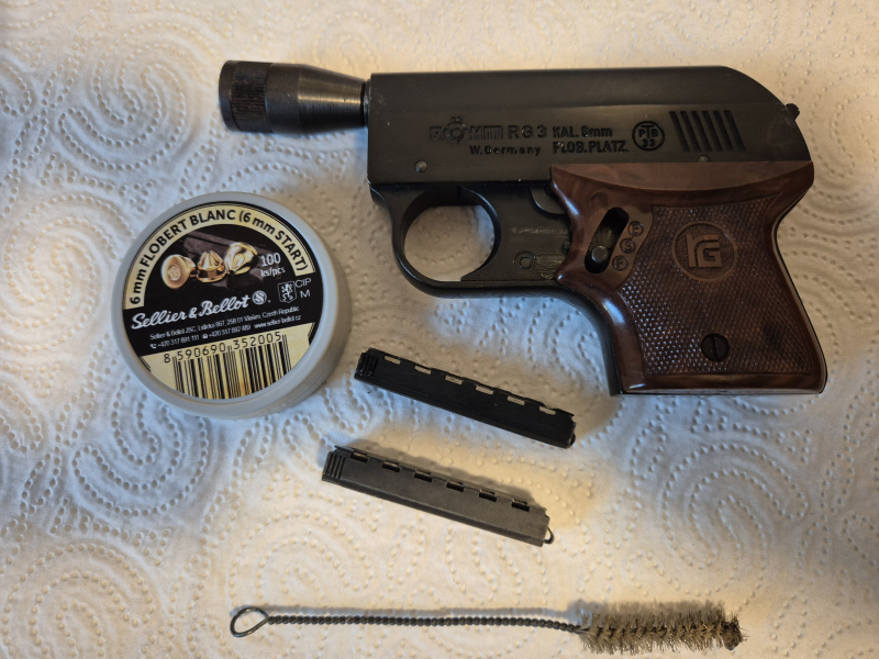 Zum Verkauf kommt hier eine Röhm RG 3 im Kaliber 6 mm Flobert mit 2 Magazinen und 100 Schuss angeboten. Die Pistole besitzt eine 3 Stellensicherung Entladen - Sicher - Schussbereit. PTB Nr. 33.