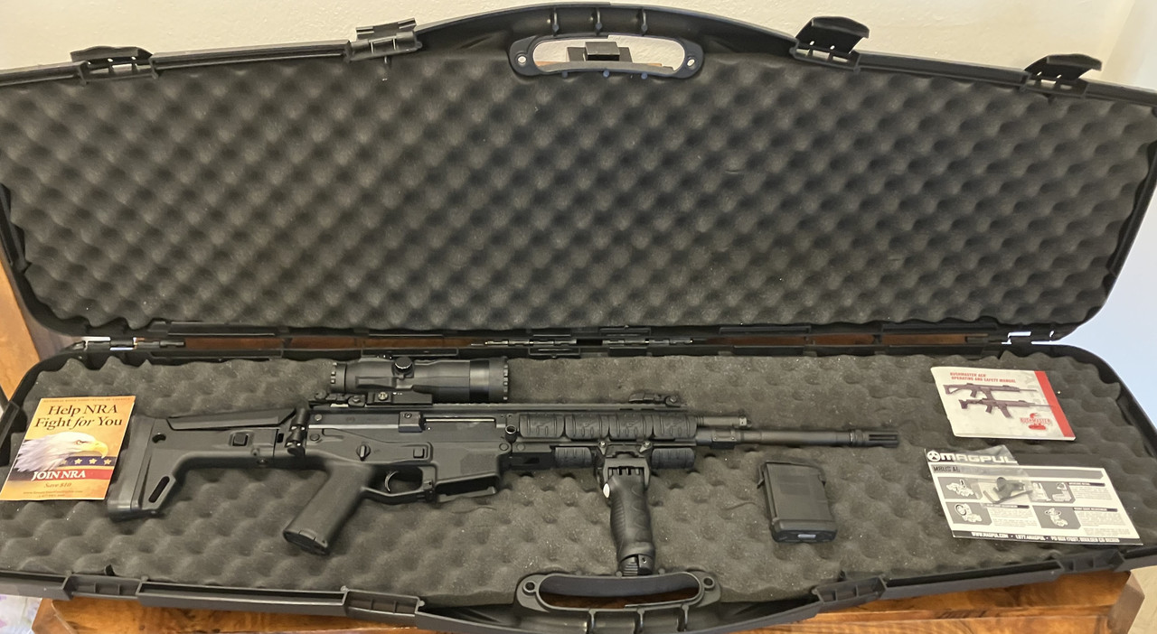 Versteigert wird die unten abgebildete Selbstladebüchse in .223 Rem / 5,56x45mm NATO mit Zubehör in Originalverpackung aus Erstbesitz : - )